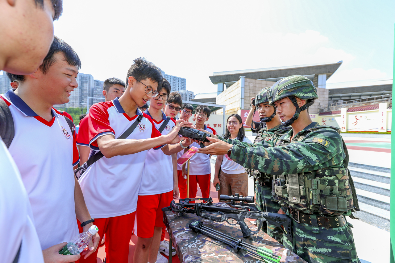2024年10月12日,由武警广东总队举办的“同心同行·强国有我”港澳青少年进军营活动在中队成功举办。50余名澳门青少年受邀到中队观摩军事课目表演、武器装备展示,学习部队光荣传统、先进典型事迹,亲身体验军事训练和日常生活。