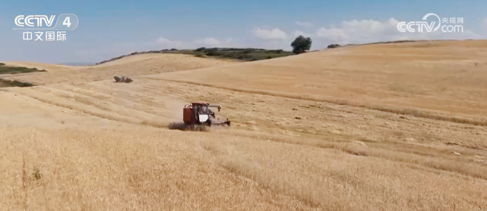 央视网消息:近期,新疆江布拉克的5万亩高山小麦陆续成熟,随山势起伏的天山麦海像一层金纱,分布在海拔1700米丘陵地带的麦田被自然沟壑巧妙分割,形成错落有致的“立体麦田”景观。