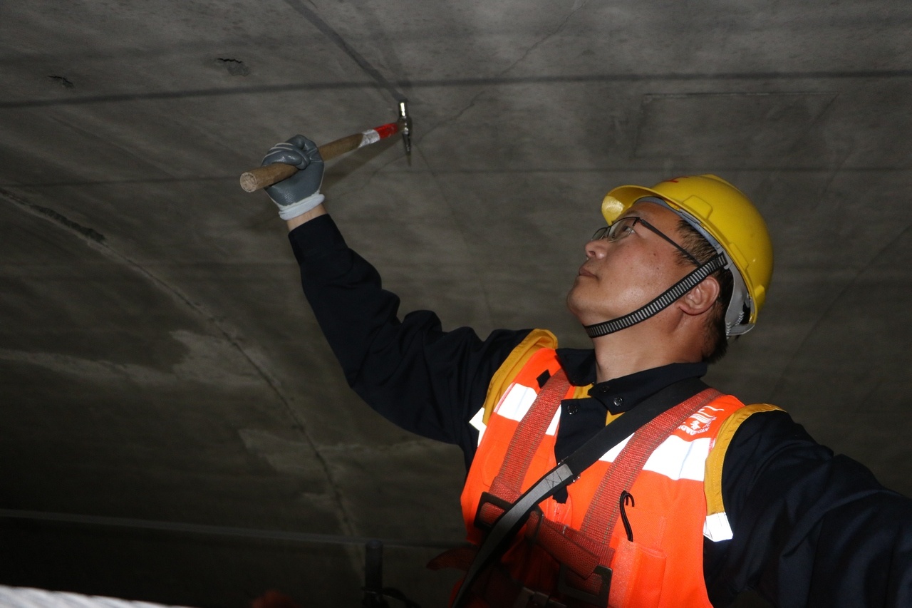 有一次,马万里在检查一座隧道时盯着一段外壁光滑的隧道墙腰,当场指出内壁里面存在空隙。在众人充满怀疑的眼神里,他果断用手中的检查锤敲向墙腰——不出所料,就在敲开的地方发现一块盘子大小的蜂窝空隙。从此,“马金锤”的绰号就被大家传开了。