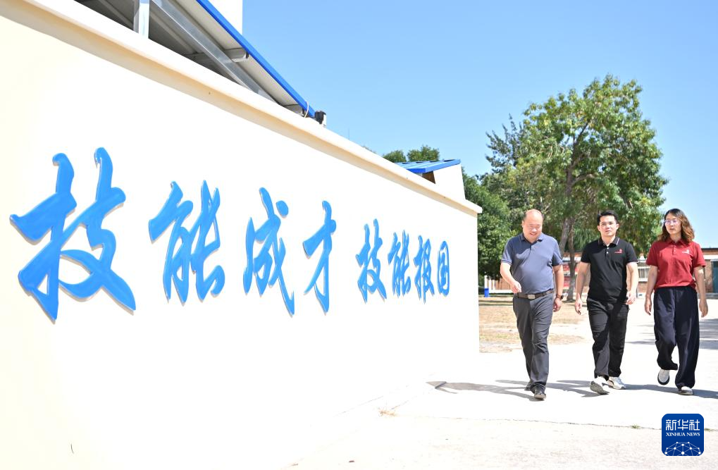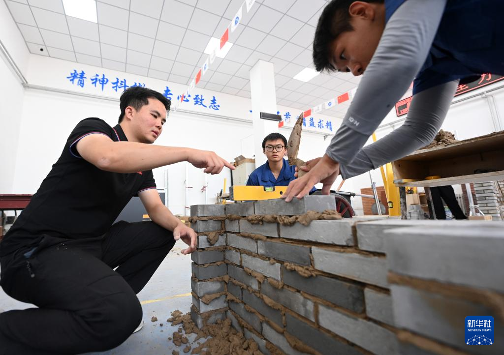 9月9日,在天津铁道职业技术学院砌筑集训基地,伍远州指导学生实践。新华社记者 李然 摄
