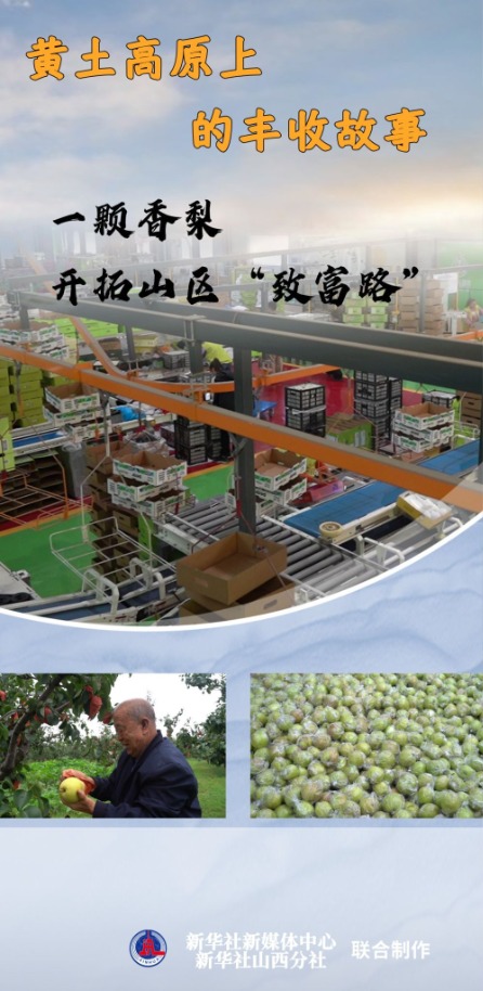 与微凉的天气形成鲜明对比的,是果农们顶风冒雨采摘销售玉露香梨的火热场面。采摘、分拣、包装,一辆辆货运卡车等待着将这份“黄土高原的甜蜜”送往全国各地。