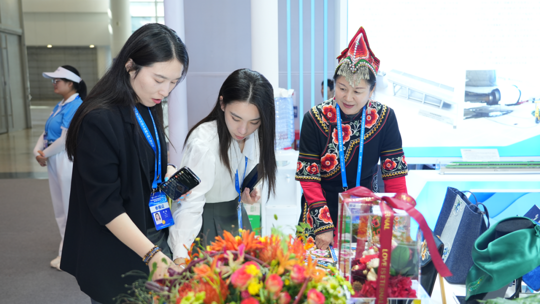 观众参观彝族刺绣文创产品