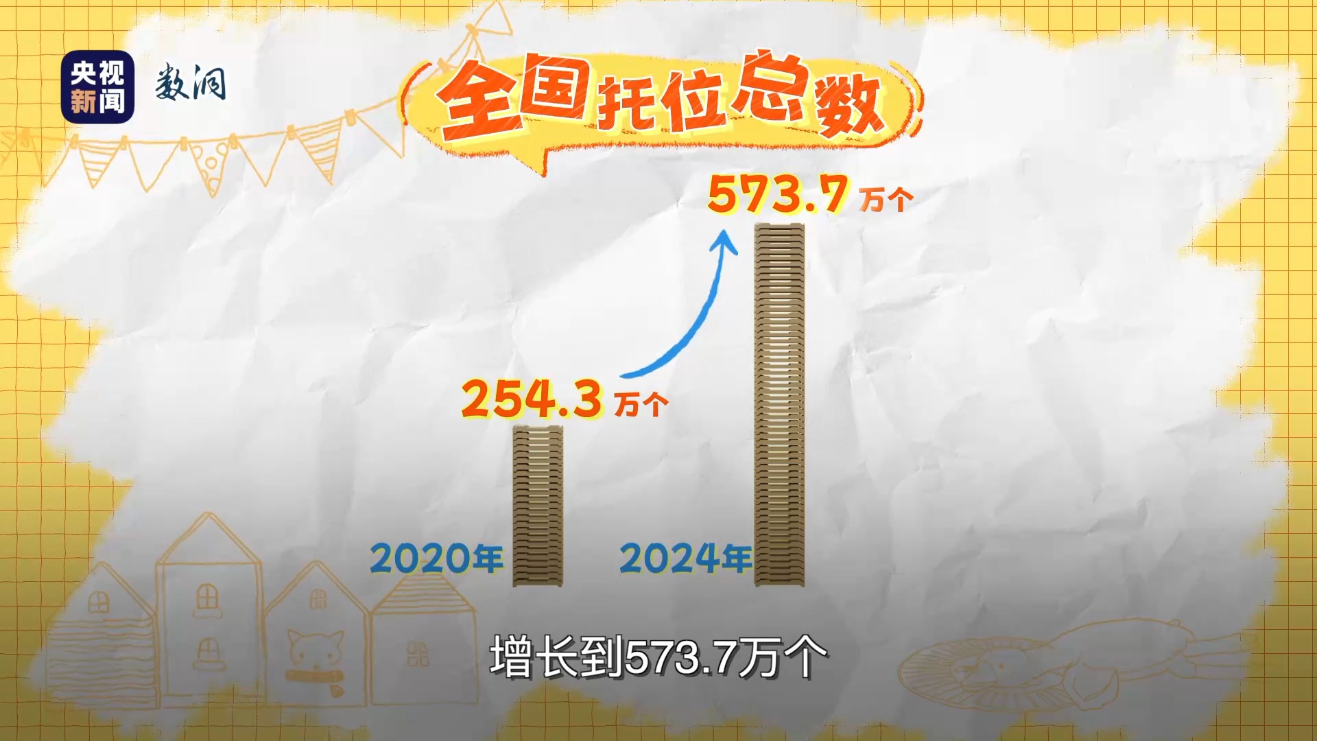 答案,正逐步写进现实。这五年,全国托位总数从原来的254.3万个,增长到573.7万个,增长126%;每千人口3岁以下婴幼儿托位数,从1.8个提升到了4.1个,覆盖率翻倍。