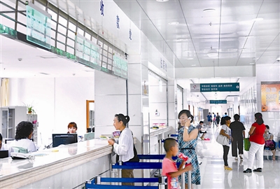 就诊者在兖州市中医院缴纳费用(7月26日摄)。