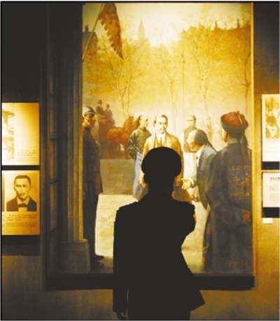 10月8日,一名观众在辛亥革命博物馆内参观。当日,投资近4亿元、历经两年建设的辛亥革命博物馆在武汉开馆。博物馆总建筑面积22000余平方米,有地上三层、地下一层、共7个展厅,总展出面积达6900平方米,通过历史场景再现及文物展示,带领观众重温辛亥革命的历史风云。 新华社记者 肖艺九 摄
