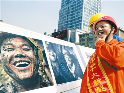 5月4日,中国中铁“十大新型农民工”徐露平观看全国首个农民工主题摄影大赛“农民工我的兄弟姐妹”全国摄影大赛获奖作品展览。本次展出的近200幅作品,多角度、多层面地反映了农民工顽强拼搏的工作场景、艰苦简陋的生活环境、乐观向上的生活态度和勇于奉献的高尚品格。李晓明 摄