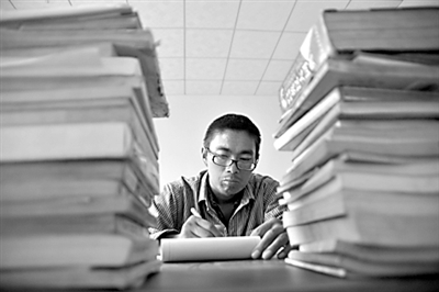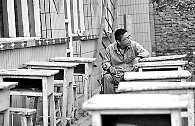 花俊刚每天早早的就会坐在课桌旁,等待着学生的到来。