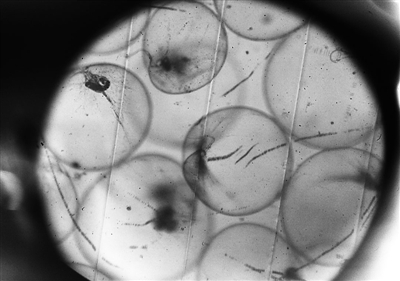 在光学显微镜下,活体夜光藻为球形,有一根鞭毛在尾部活动。