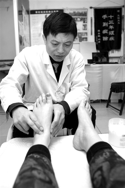 “自从在这里开店,这张告示就贴出去了,几乎每天都会给有困难的人免费修脚、按摩,有些行动不便的,我还会上门服务。”王勉说,这些工作已经成为自己生活中的一部分,他从没觉得自己损失什么,相反他觉得自己无比快乐。