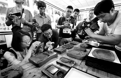 5月29日,山西“大匠出动”职工创新工作室建设观摩交流团队在蔺涛传统工艺(手艺)大师创新工作室进行观摩交流。当日,由山西省总工会、山西省机械冶金建材工会联合会组织的“大匠出动”职工创新工作室建设观摩交流团队开始在全省范围内开展观摩交流。高新生 摄