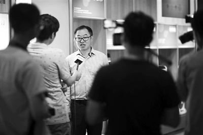 5月31日,“相约顺德——最牛企业之工匠精神”全国电视联合采访活动在广东顺德举行开机仪式。国内19家媒体参与此次联合采访。在为期一周的采访中,众多媒体将镜头对准顺德龙头企业,探寻企业工匠们如何扎根顺德、深耕顺德。图为美的集团环境电器事业部研发总监李殿飞接受联合记者采访团采访。刘震 摄/中新社