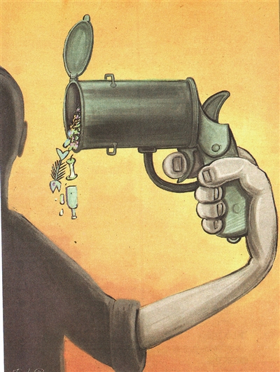 垃圾之“患”波及到了海滨浴场。谁能想到跳水人一头扎到丢弃物中?在阵阵尴尬和声声叹息过后,人们的反思竟然是惊人的一致:保护环境,从我做起。
