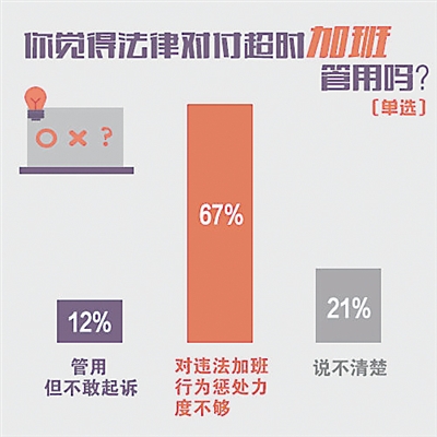 在调查中,不少网友认为现在加班普遍,监管部门应加大查处力度。
