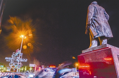 张家口南站,詹天佑的雕塑和2022冬奥会标识隔街相对。