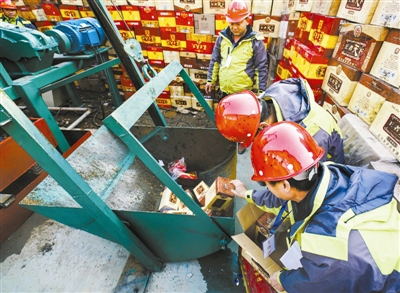 12月14日,工作人员正在销毁假冒伪劣商品。