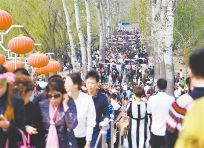 4月4日,记者从北京市旅游委获悉,2017年清明小长假,北京市重点监测的161家主要景区游客共计接待563.7万人次,同比增长12.3%;营业收入累计1.57亿元,同比增长19.5%。其中,颐和园、北海公园、玉渊潭公园等景区接待游客数量同比均有大幅度增长。 新华社记者 张晨霖 摄