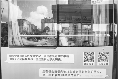 由江苏省江阴市举办的“喜欢江阴的理由”活动受到市民与网友的欢迎,目前共征集到1000多条赞美家乡的留言,张贴公布在86辆公交车上,成为流动的风景线。