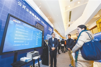 12月18日,观众在活动现场参观公共法律服务智能一体机。