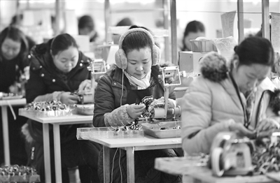 湖北省恩施土家族苗族自治州宣恩县以工业园区为依托,组织和动员园区企业和专业合作社,根据劳动力分布情况将简易轻型的生产设备搬运到易地扶贫搬迁安置点,打造供搬迁农民就业的“便携车间”。目前,宣恩县已建成36个“便携车间”,为易地扶贫搬迁的农民提供岗位3000余个,帮助参与精准扶贫的企业破解“用工难”问题。新华社发(宋文 摄)