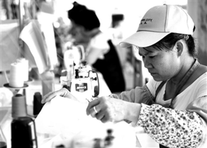 6月11日,易地扶贫搬迁群众在广西融安县老乡家园康欣易地扶贫搬迁点的微扶贫车间缝制服装。近年来,融安县采取系列措施,积极发展微市场、微车间等微产业,确保易地扶贫搬迁群众搬得出、稳得住、能致富。新华社记者 周华 摄