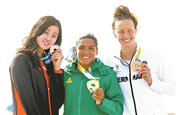 10月13日,在卡塔尔首都多哈举行的首届世界沙滩运动会女子公开水域5公里游泳比赛中,巴西选手苏亚雷斯以59分51秒的成绩夺冠,中国选手侯雅雯以59分52秒的成绩获得亚军。