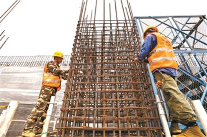 8月5日,中铁十一局工人在清远磁浮银盏温泉站施工作业。