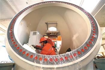 图为1月27日,邢台金风科技有限公司工人在生产车间工作。