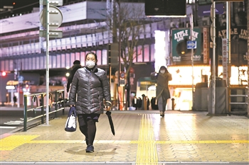 ① 2月2日,在日本东京,人们戴口罩出行。日本首相菅义伟2日晚宣布,对于11个原定实施紧急状态到2月7日的都府县,除栃木县到期解除外,东京都、大阪府等其余10个都府县的紧急状态将延长到3月7日。 新华社记者 杜潇逸 摄