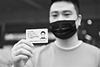 4月1日,浙江杭州,一位市民展示其儿子在异地申领的身份证。当日起,浙江省杭州市、温州市、台州市、绍兴市4地先行试点居民身份证首次申领异地受理,该省民众在浙江省范围内选择就近户籍派出所即可办理身份证首次申领。王刚 摄/中新社