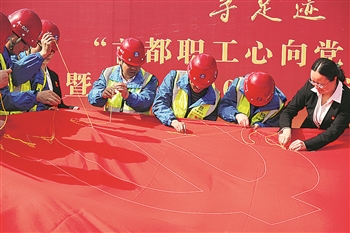 4月13日,由北京市总工会主办的“首都职工心向党 同心接力绣党旗”活动走进雄安新区。该活动自2月28日启动至今,已深入工厂企业、街道社区等,将在“七一”前夕完成10面巨幅党旗的传递绣制。 本报记者 赖志凯 摄