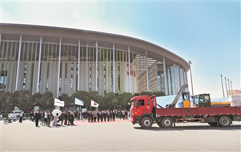 当日,第四届进博会首批展品抵达国家会展中心(上海),进博会布展工作正式开始。