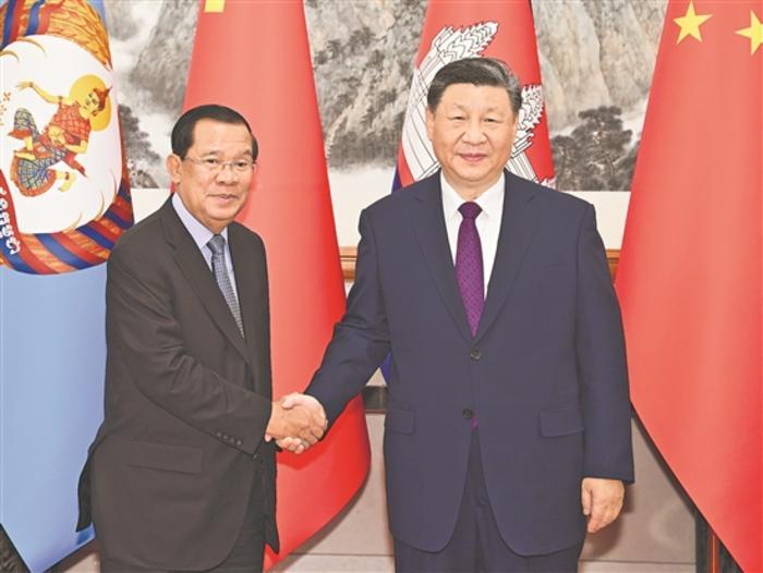 习近平指出,当前,国际形势变乱交织,全球性挑战层出不穷,考验着各国的应对和选择。中柬两国都致力于做世界的和平力量、发展力量、进步力量。中方将继续支持柬埔寨在国际和地区事务中发挥更大作用,壮大“全球南方”力量,支持东盟坚持战略自主,维护中心地位,坚决反对外部势力将冷战思维引入本地区,坚定不移推动东盟一体化和共同体建设。中方愿同柬方坚定道不改、志不变的决心,增强底线思维,加强协作和配合,共同应对各种风险。