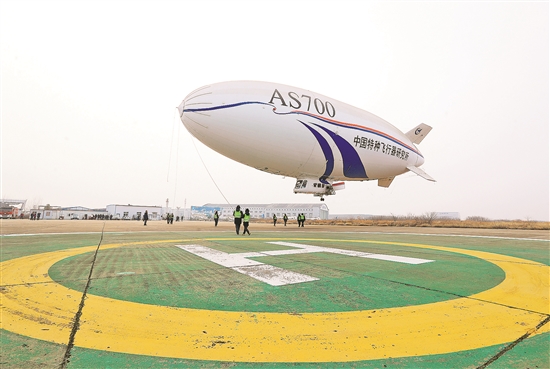 图为2月21日拍摄的国产电动型飞艇AS700D。2月21日,国产载人飞艇“祥云”AS700电动型AS700D在湖北荆门成功完成科研首飞,为后续电动飞艇的研制及应用进行技术储备。新华社发(中国航空工业集团特种飞行器研究所供图)