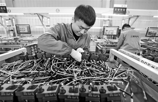 在位于宁夏同心工业园区清洁能源产业园的上能电气(宁夏)有限公司车间内,工作人员组装逆变器开关模块(2月20日摄)。