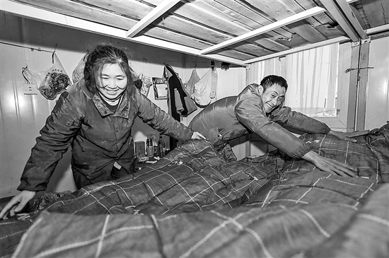 2月21日,浙江省金华市乐业雅园项目建设工地里,来自四川的谢永斌、赵容华夫妇领到公司发放的棉被。