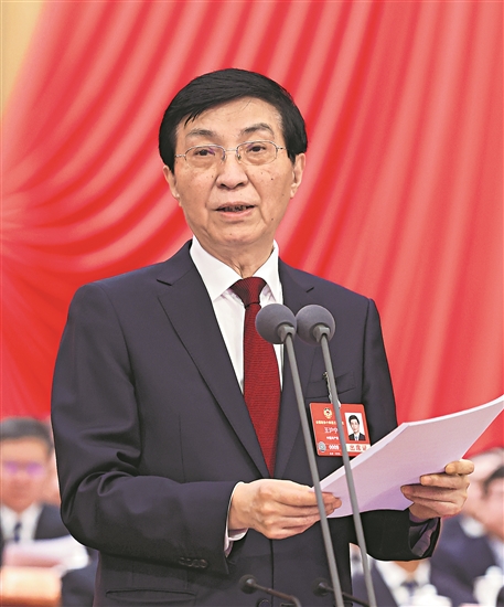 全国政协主席王沪宁主持闭幕会并讲话。新华社记者 刘卫兵 摄