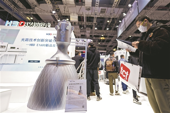 3月17日,与会者在第十一届亚洲3D打印、增材制造展览会上参观。