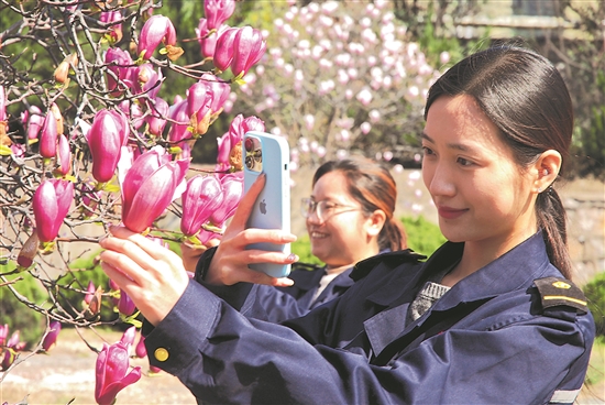 阳春三月,安徽淮北矿业集团铁运处临涣分处的院落里,樱花如云、玉兰似雪,一树树繁花随风摇曳,将矿区装点成花园。职工们纷纷驻足赏花、拍照打卡,在忙碌的工作间隙感受盎然春意。