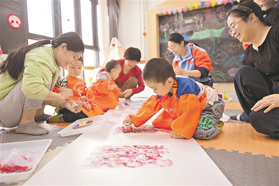 3月25日,家长带着孩子在雄安新区容西片区贤溪社区党群服务中心亲子活动室玩耍。