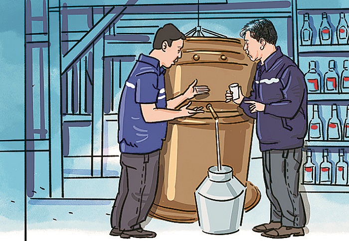 这天,王德斌像往常一样巡查车间,很快就注意到了对着大曲发愁的小张。