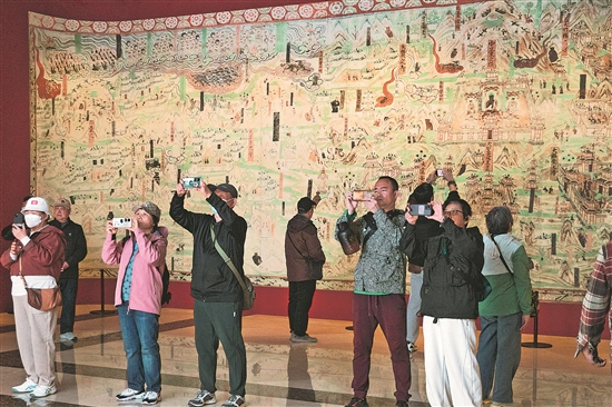 日前,观众在北京展览馆观看“如是莫高”敦煌艺术大展。
