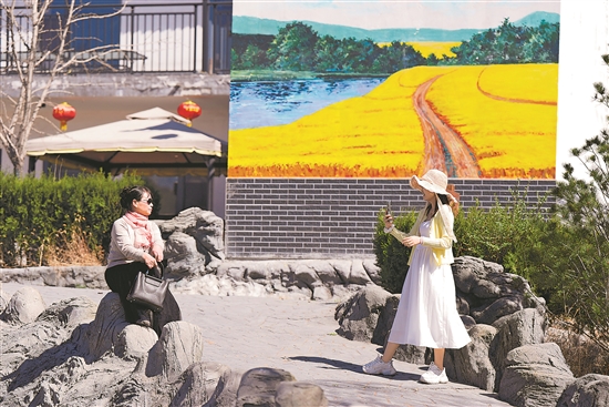 4月9日,游客在宁夏石嘴山市大武口区龙泉村游玩。
