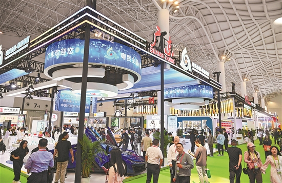 这是第五届中国国际消费品博览会国货特色潮品展区(4月13日摄)。