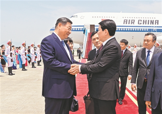 新华社河内4月14日电 (记者杨依军 邹学冕)当地时间4月14日中午,中共中央总书记、国家主席习近平乘专机抵达河内,应越南共产党中央委员会总书记苏林、越南社会主义共和国主席梁强邀请,对越南进行国事访问。