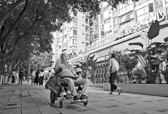 9月1日,70岁老人刘成根开着电动轮椅来到成都市营门口街道综合为老服务中心。该中心是一家由政府支持、企业运作、社会参与的集全托、日托、康复理疗、专业护理等为一体的社区养老服务综合体。中心把日间照料、生活护理、精神慰藉等社会服务向老年人身边、周边聚集,让老年人在家门口安心养老。