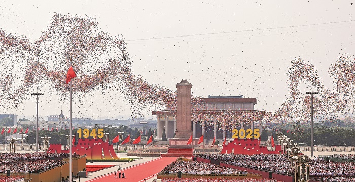 世界的目光看向东方,胜利的旗帜高高飘扬。