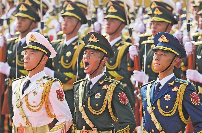 “同志们好!”、“主席好!”统帅的亲切问候饱含鼓舞激励,官兵的响亮回答充满力量底气。和平之师、正义之师、威武之师、胜利之师雄姿英发。
