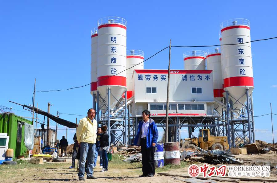 图为满宏跑企业、下工地,来到呼和浩特市一家正在建设中的预拌混凝土搅拌站检查工作。