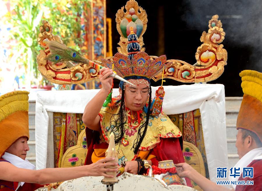 10月8日,班禅在火供法会上。当日,全国政协常委、中国佛教协会副会长班禅额尔德尼·确吉杰布在西藏日喀则市德庆格桑颇章举行“火供”宗教仪式。“火供”是藏传佛教密宗里的一种特殊供养仪轨,是用焚烧贡品、谷物、树枝、咒符等供养神灵的祭祀方式之一,通常用来祈求祥和平安,也用来超度亡灵、降妖伏魔。觉果 摄 图片来源:新华网
