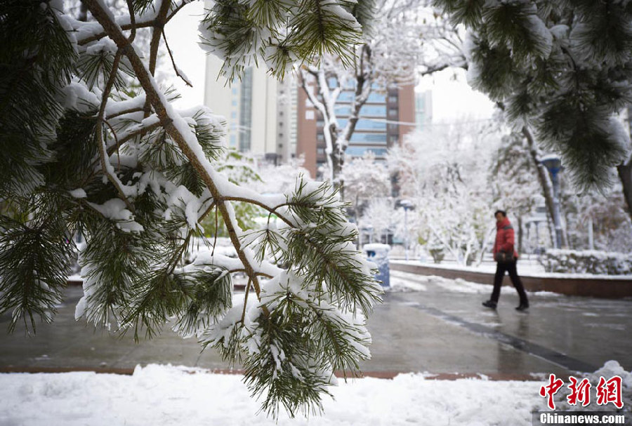 经过一夜降雪,道路两旁的树木一片银装素裹。刘新 摄